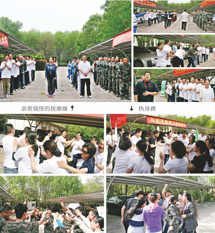 17日下午三點(diǎn),全體人員又整隊(duì)聚集在集團(tuán)停車場,精神飽滿地迎接下午的比賽。為了放松緊張的心情,在比賽前組織大家做了親密搞怪的按摩操,互相給隊(duì)友按摩。按摩操讓大家瞬間增加了親密度,放松了身心。