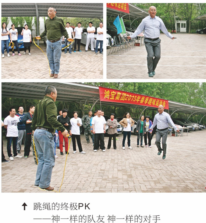 比賽中還臨時(shí)增加了一場友誼賽,黨委書記鄧和平和監(jiān)事孟祥勇兩位領(lǐng)導(dǎo)受到比賽熱烈氣氛的感染,即興進(jìn)行了一場友誼賽,只見兩位領(lǐng)導(dǎo)雖年過五旬,但風(fēng)采不減當(dāng)年,跳起繩來仍充滿童心和活力,被譽(yù)為“神一樣的對手”,老當(dāng)益壯的二位領(lǐng)導(dǎo)的比賽讓賽場頓時(shí)成為一片歡樂的海洋。